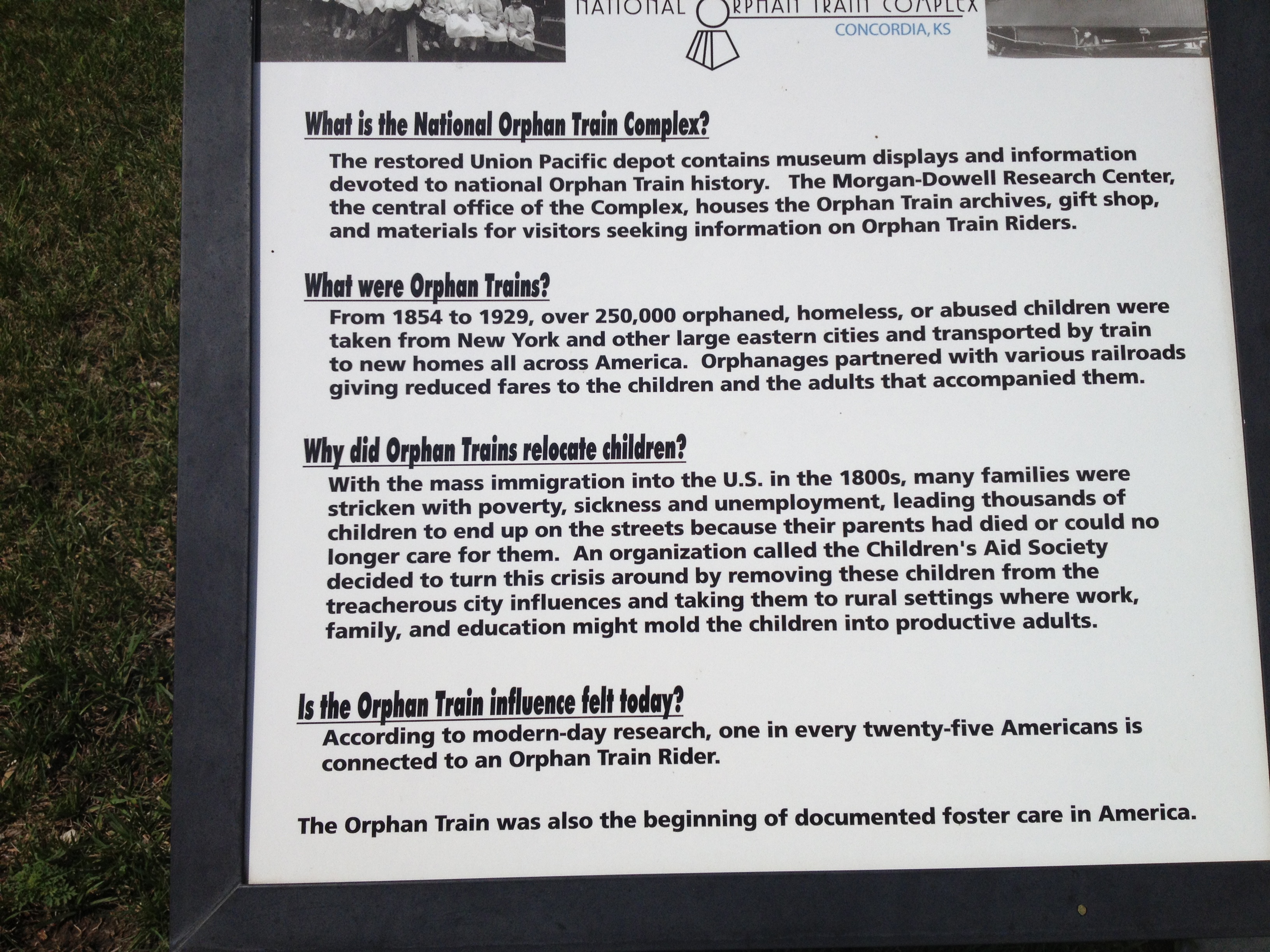 There is a National Orphan Train Museum and Research Center in Concordia, Kansas.
